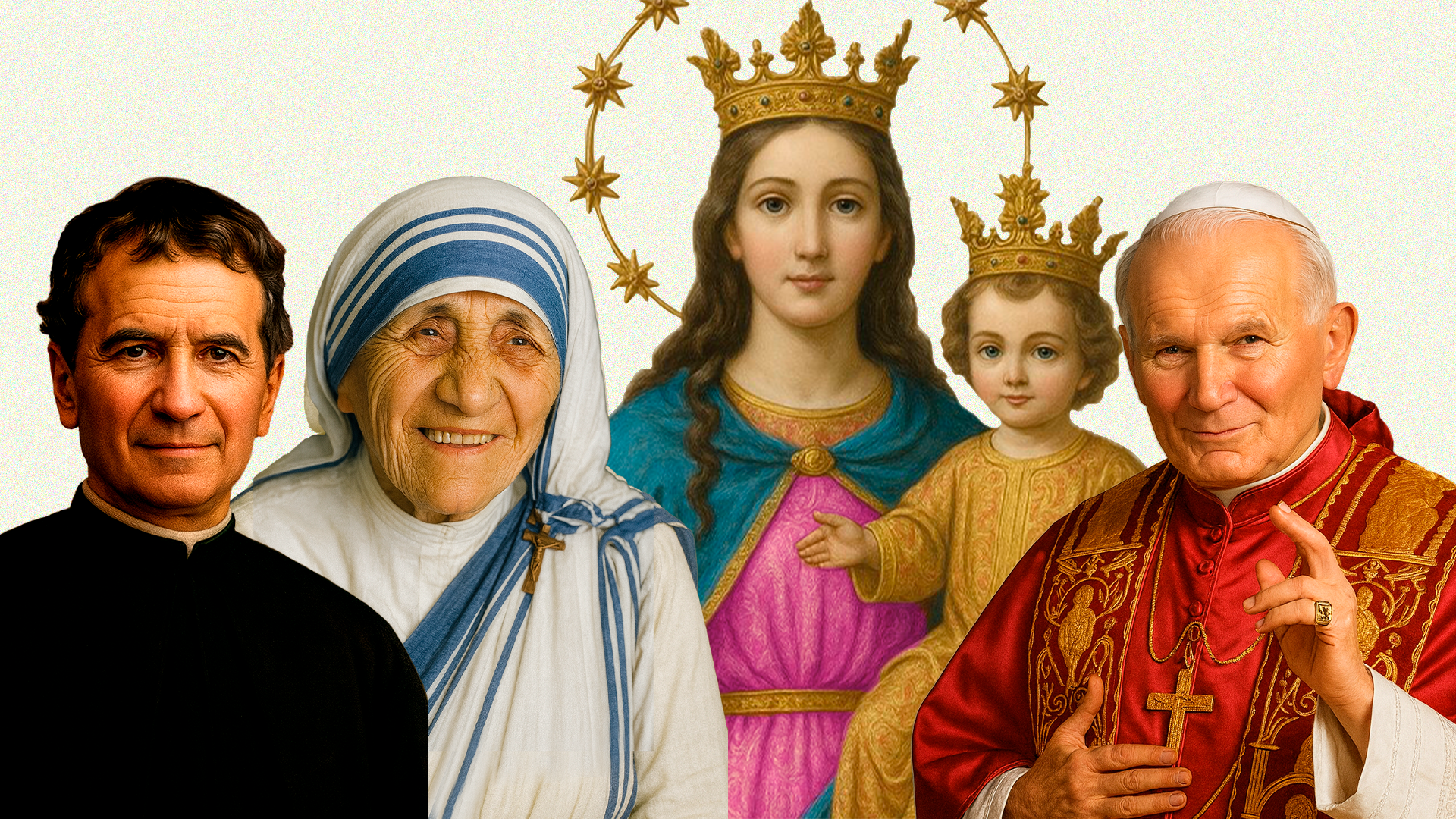Madre Teresa de Calcutá, nascida Agnes Gonxha Bojaxhiu em 1910, na atual Macedônia, cresceu em uma família profundamente religiosa que desde cedo lhe ensinou o valor da caridade e da compaixão. Aos 18 anos, movida por um forte chamado vocacional, ingressou nas Irmãs de Loreto e foi enviada para a Índia, onde começou sua missão como professora. Embora amasse ensinar, seu coração inquietava-se ao ver a pobreza extrema que cercava as ruas de Calcutá. Em 1946, durante uma viagem de trem, viveu aquilo que chamaria de “um chamado dentro do chamado”: Deus a convidava a deixar o convento e dedicar sua vida aos mais pobres dos pobres. Com coragem, obediência e fé, ela deu início a uma obra que transformaria o mundo.